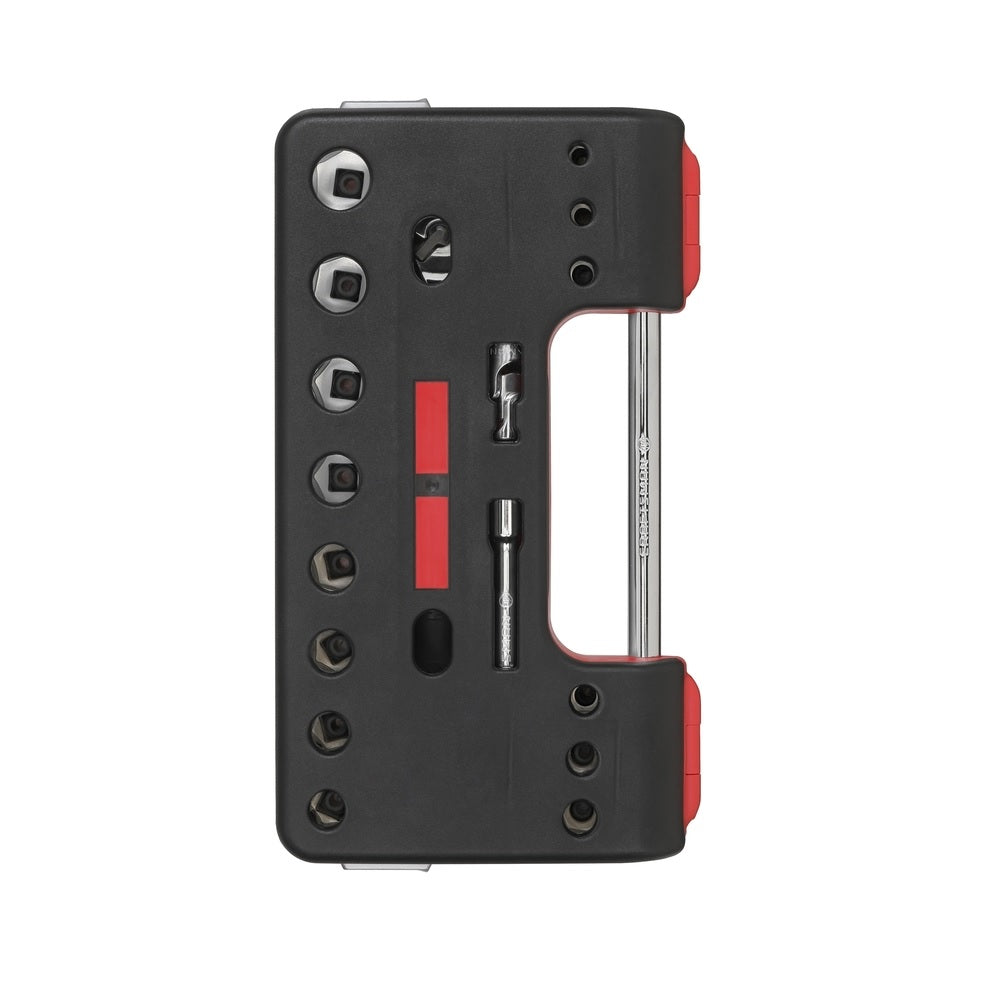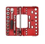 Includes:(1) 3/8 inch Drive Bi-Material Ratchet, (14) 3/8 inch Drive 6 Point Shallow Sockets – 8 mm, 9 mm, 10 mm, 11 mm, 12 mm, 13 mm, 14 mm, 15 mm, 16 mm, 17 mm, 18 mm, 19 mm, 21 mm and 22 mm, (1) 3/8 inch Drive Universal Joint, (1) 3/8 inch Drive 5 inch Locking Extension Bar and (1) 3/8 inch Drive 10 inch Locking Extension BarWarning: Cancer and Reproductive Harm – www.P65Warnings.ca.gov