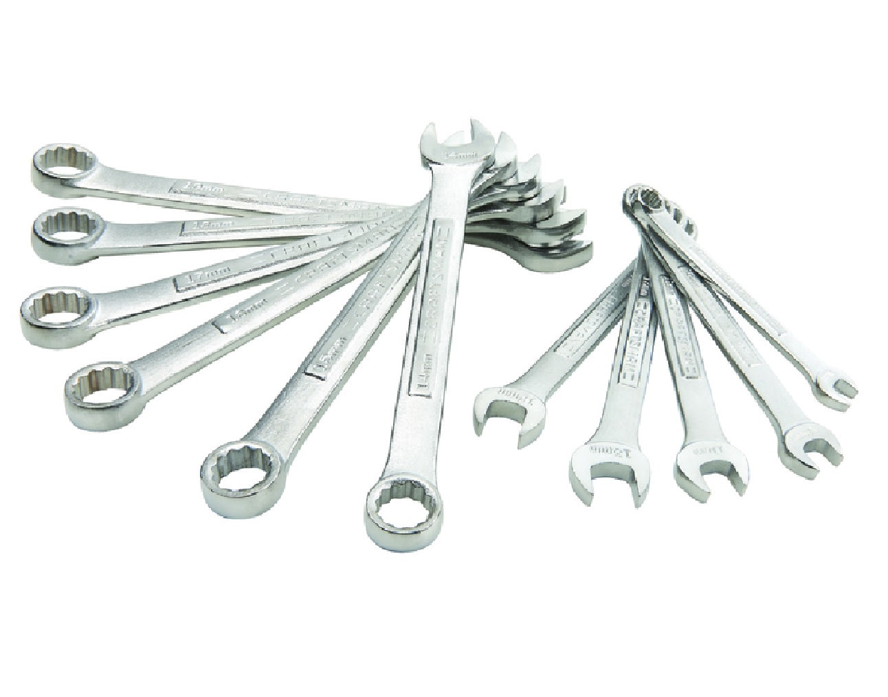 Included: (11) Large Combination Wrenches – Metric (8mm, 10mm, 11mm, 12mm, 13mm, 14mm, 15mm, 16mm, 17mm, 18mm, 19mm)