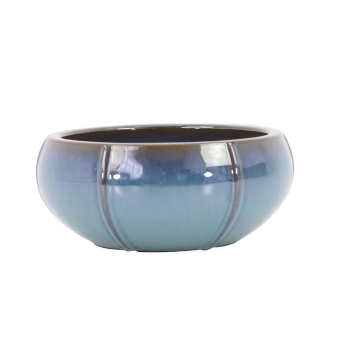 Highlights:Material: CeramicColor: Light BlueHeight: 6 inchWidth: 13 inchDepth: 13 inchDiameter: 13 inchDrainage Holes: YesIndoor or Outdoor: Indoor a