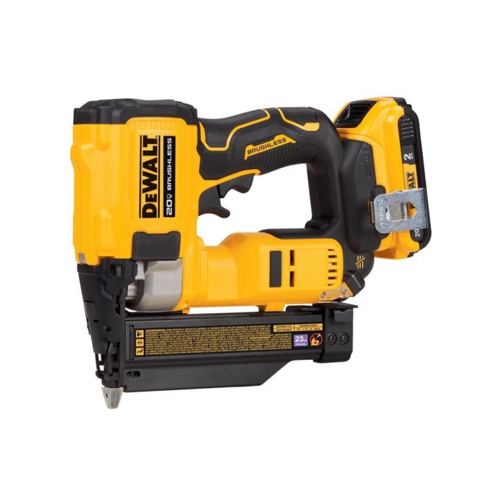 Highlights:Gauge: 23 Ga.Volts: 20 VCase Included: YesMagazine Capacity: 110Firing Method: Bump and SequentialBrushless: YesMinimum Fastener Size: 5/8