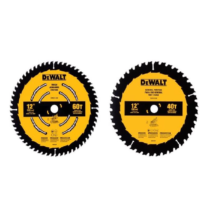 Highlights:Material: Tungsten Carbide TippedDiameter: 12 inchArbor Size: 1 inchNumber of Teeth: 40/60 teethNumber in package: 2 pkUltra sharp carbide