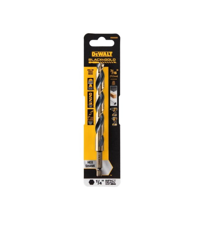 Highlights:Material: High Speed SteelFinish: Black/GoldDrill Size: 7/16 inchShank Type: Hex ShankShank Diameter: 1/4 inchTip Type: Split PointThe 135
