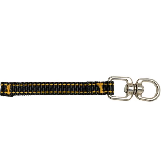Highlights:Color: Black/YellowMaterial: Polyester WebbingStyle: SwivelLength: 4.5 inchOSHA Compliant: YesReinforced, double-stitch ends, and steel d-r