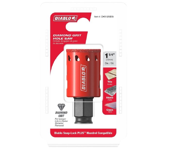 Diablo DHS1250DG Diamond Grit Hole Saw, 1-1/4 in Dia