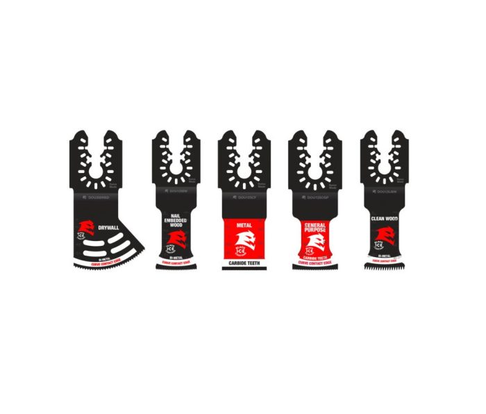Consists of 1-1/4 inch bi-metal blade for nail-embedded wood, 1-1/4 inch bi-metal blade for clean wood, 1-1/4 inch carbide blade for general purpose cuts, 1-1/4 inch carbide blade for metal and 2 inch bi-metal blade for drywall blades.