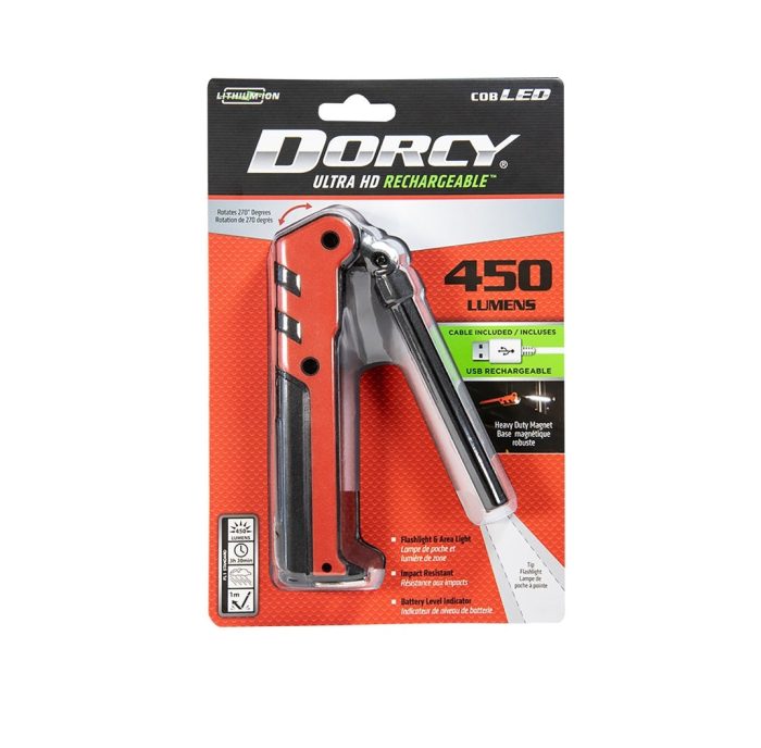 Another feature include a fold away hang hook to provide 180 deg rotatable light for hands-free use
