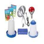 WHAT’S INCLUDED: 10.5 inch Brooder Reflector Lamp, 250W Red Heat Lamp Bulb, 1.5-lb. Plastic Poultry Chick Feeder, 1.5-qt. Plastic Poultry Chick Waterer and 8 inch Plastic Ground Feeder
