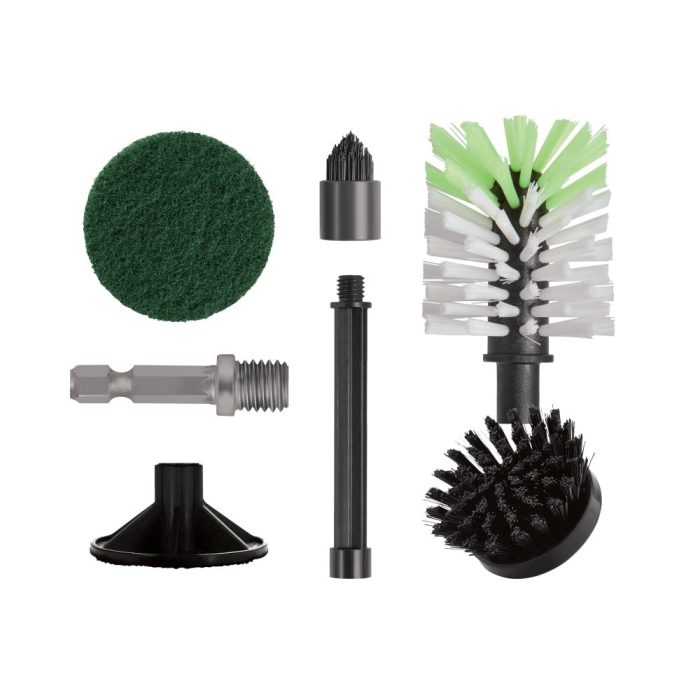 Includes:(1) Bristle Brush (1) Corner Brush (1) Detail Conic Brush (1) 4 in Extension (1) Backing Pad (1) 1/4 in Hexagonal Adapter