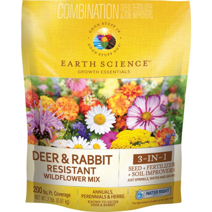 Includes a vibrant mixture of annuals, perennials and herbs known to deter deer and rabbits