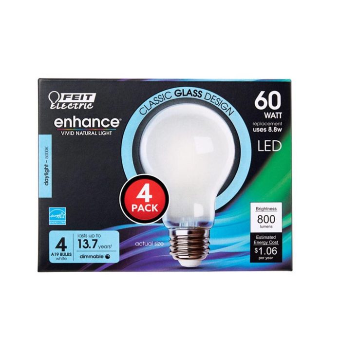 Feit Electric A1960950CAFIL4 A19 E26 Daylight LED Bulb, 120 Volt