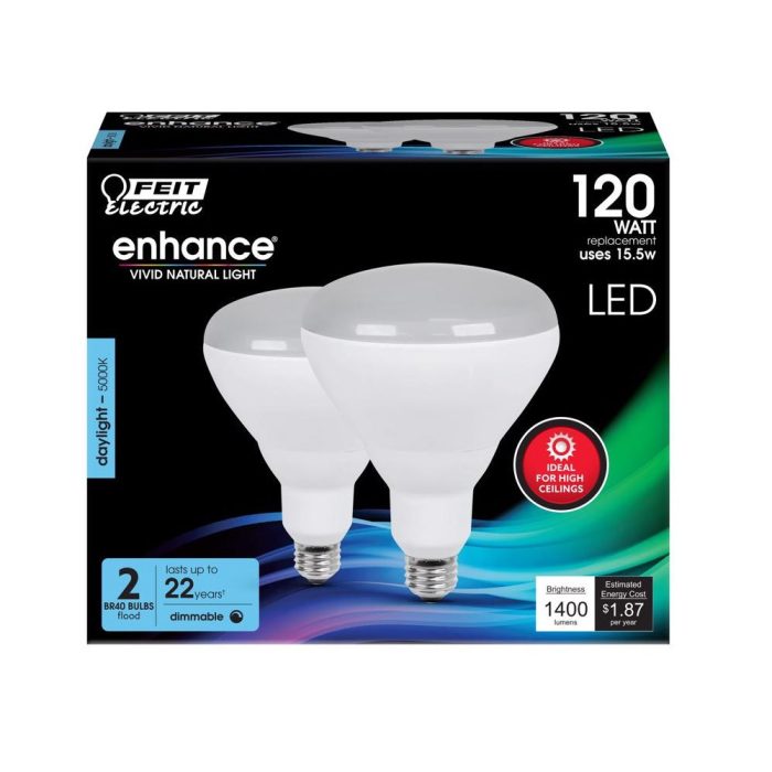 Home home improvement>lamps & light fixtures>light bulbs>indoor floodlight / spotlight Feit Electric BR40DMHO/950CA2 BR40 LED Floodlight Bulb, 15.5 Watts, 120 Volt