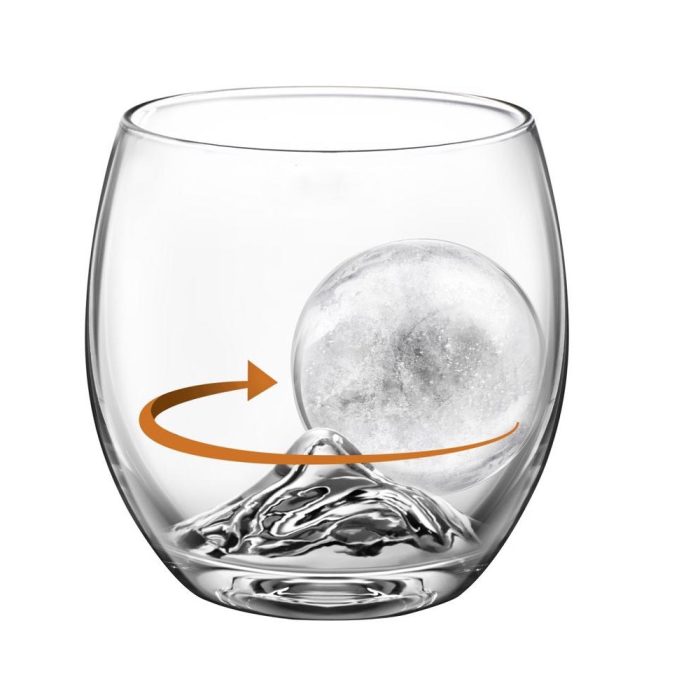 The bottom of the glass has our rock which creates a natural liquid motion increasing the nosing of aromas