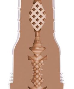 The Autumn Falls Fleshlight stroker has a “Cream” texture designed to tantalize with its dense pattern of bumps and waffle grid texture combined with intermittent waves of tightness. When not in use, this stroker can be tucked away discreetly; it’s got a pearlescent white outer case and screw on lid.