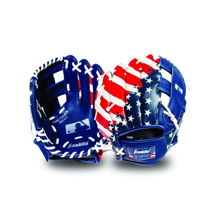 This MLB USA themed glove is perfect for any young tee ball player to practice their catching and throwing skills
