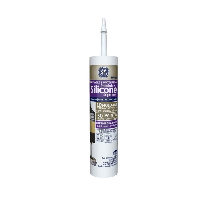 GE 2733730 Window and Door Silicone Caulk, White, 10.1 oz