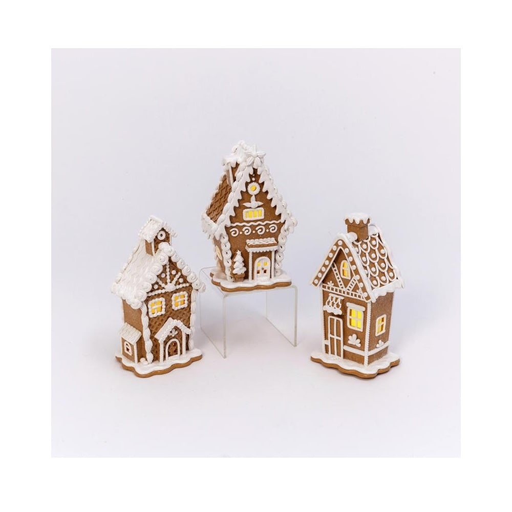 Highlights:Power Type: LEDColor: BrownDesign: Lighted Gingerbread HouseIndoor Decor Type: Tabletop DecorChristmas Motif: CenterpieceLength: 4.2 inchMa