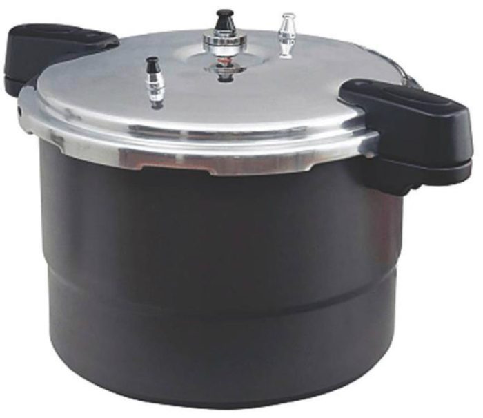 Hard Anodized finish so it can be used as a pressure cooker or steamer without changing the flavor or color of food