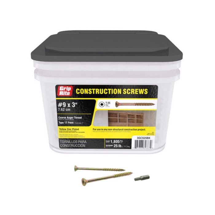 Grip-Rite 3GCS25BK Flat Head Construction Screws, Steel, 25 lb