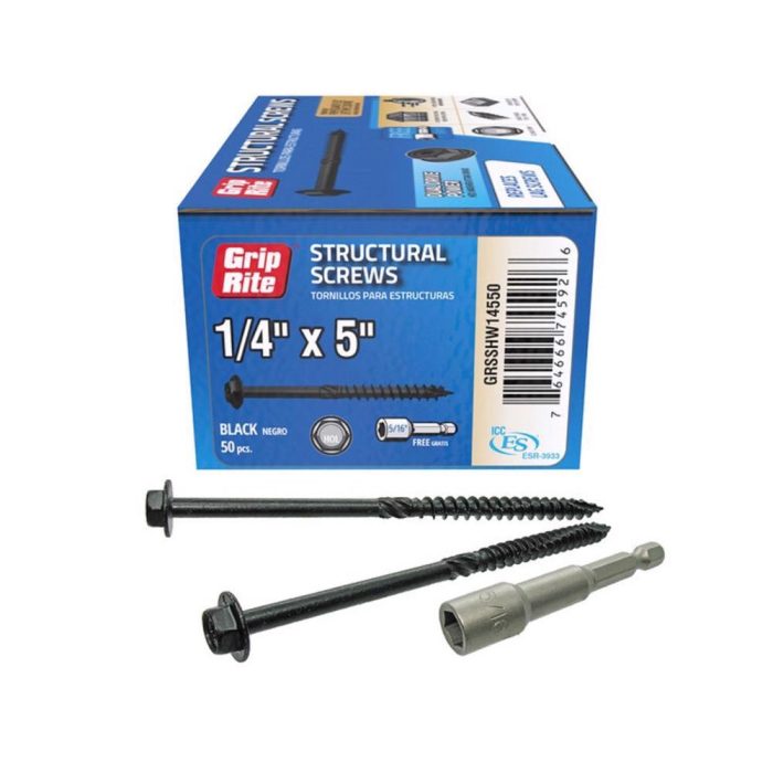 Grip-Rite GRSSHW14550 Hex Washer Head Structural Screws, 5 Inch