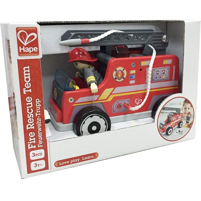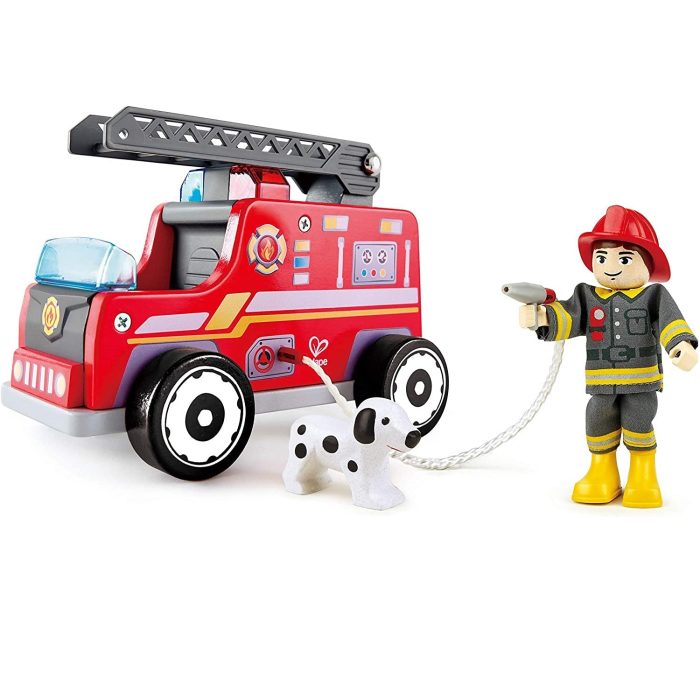 Highlights:Material: WoodColor: MulticoloredRecommended Age: 3+ yearturdy fire truck with action figuresFlexible fire fighter and dogThe truck’s wheel