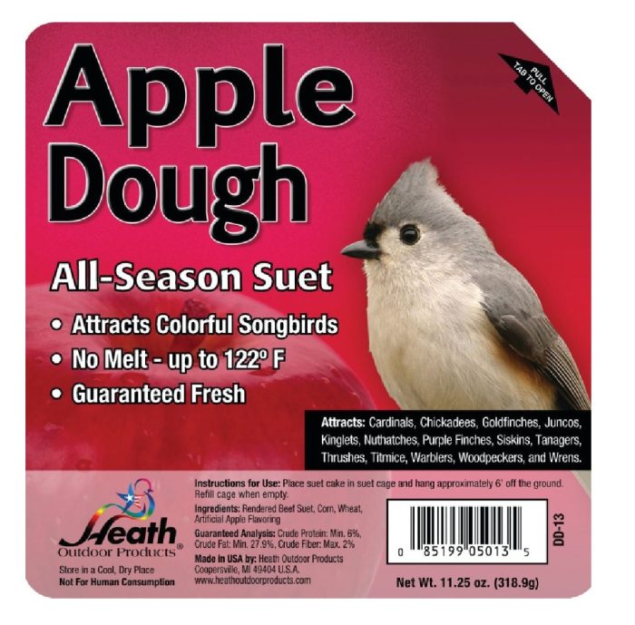 A No Melt blend of suet, grains & apple flavoring. High fat content for year round feeding. 11.25 ounces per cake.Sold by the case: 12 cakes per case. Premium Suet Blend Attracts These Colorful Songbirds: Cardinals, Chickadees, Goldfinches, Juncos, Kinglets, Nuthatches, Purple Finches, Siskins, Tanagers, Thrushes, Titmice, Warblers, Woodpeckers and Wrens.