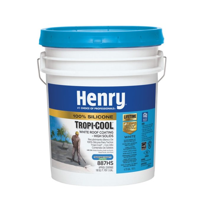 Henry HE887H073 Silicone Roof Coating, White, 4.75 gallon