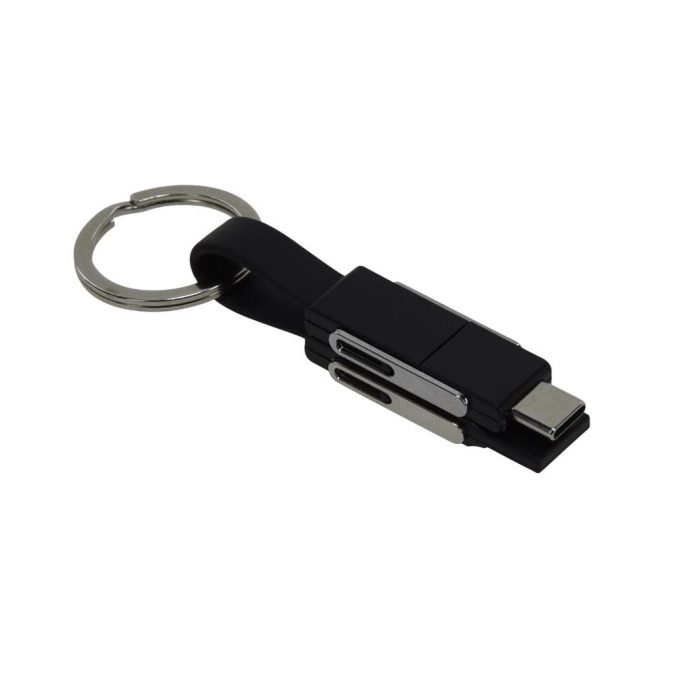 Highlights:Color : Black/SilverMaterial : PVCKey Ring Style : SplitStrong magnet keeps charging cable connected while attached to your keychainMade of