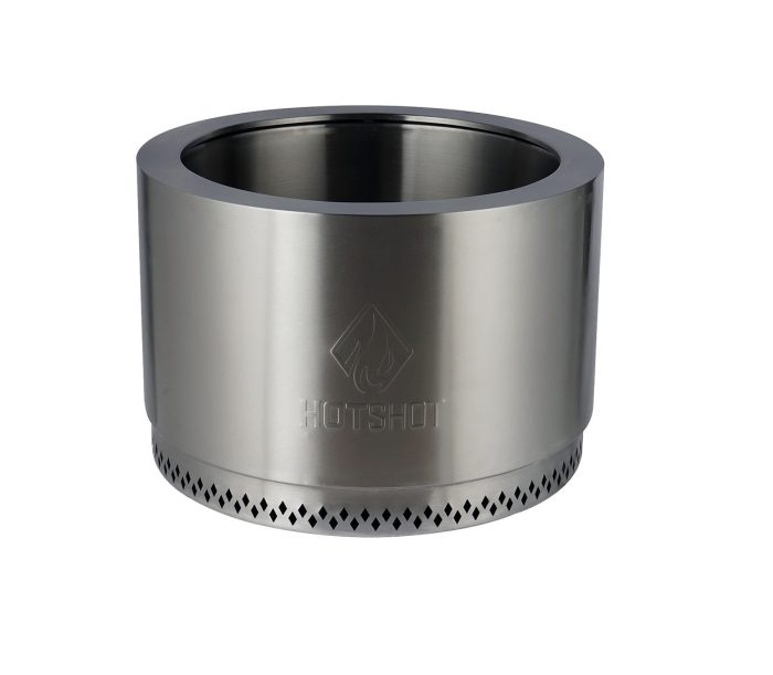 This is the largest size in the HotShot Stainless Steel Smokeless fire pit line, with its expanded fire pit firebowl, it will create longer lasting fires, while letting you add wood less often throughout the evening