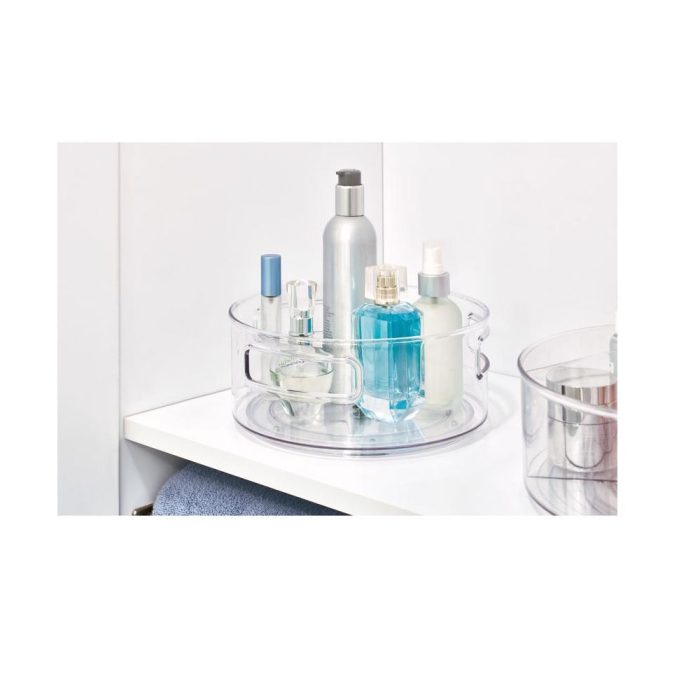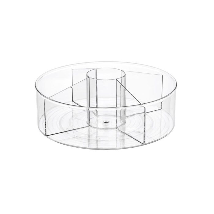 Highlights:Color: ClearMaterial: PlasticHeight: 4.5 inchWidth: 11.5 inchDepth: 11.5 inchRotates for easy accessMiddle cup storage4-Divided compartment