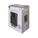 Supports Bluetooth v5.0; built-in 8 inch speaker; FM scan radio; Aux in (3.5mm audio input)