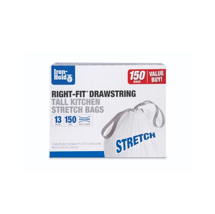 Iron Hold 1695249 Tall Kitchen Drawstring Bags, Plastic, White