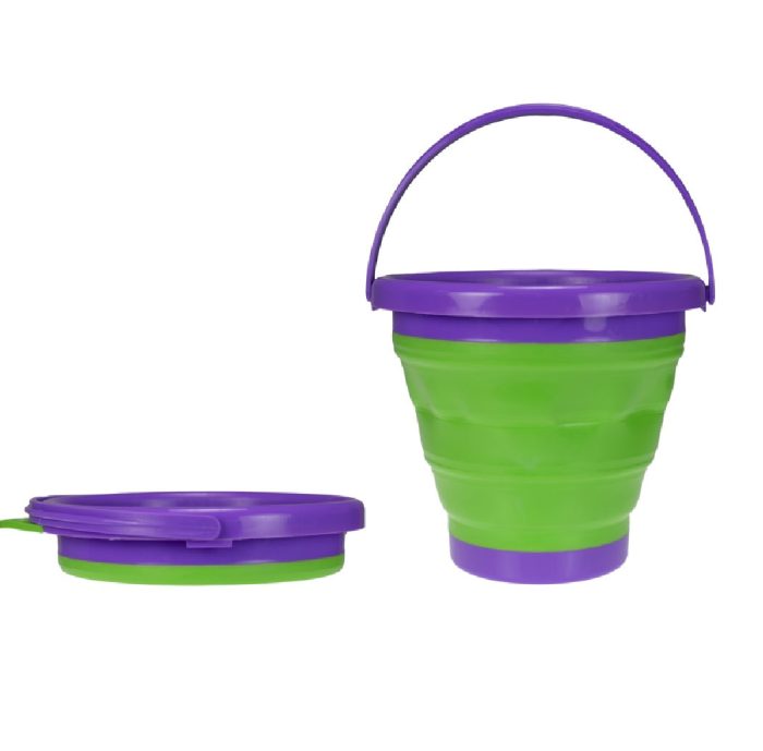 Portable sand pail that is easy to carry and expands when ready to use.