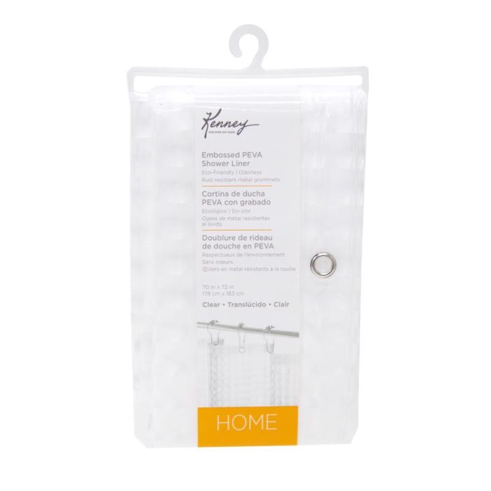 Highlights:Color: ClearMaterial: PEVADesign: EmbossedCurtain Height: 72 inchCurtain Width: 70 inchWeight Rating: MediumweightEnvironmentally friendly,