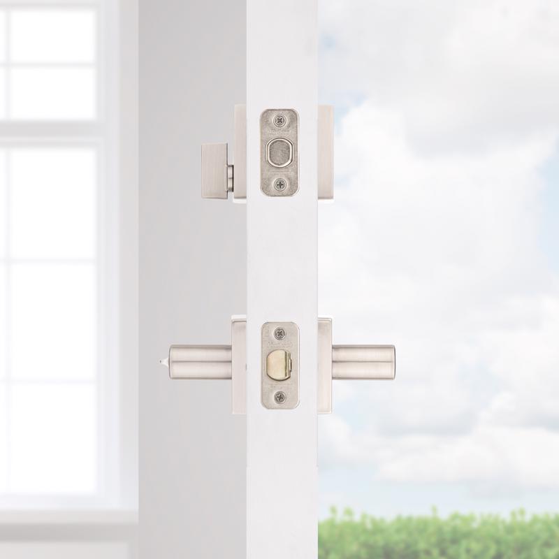 Latch has adjustable backset 2-3/8 inch to 2-3/4 inch to fit all standard door preparations