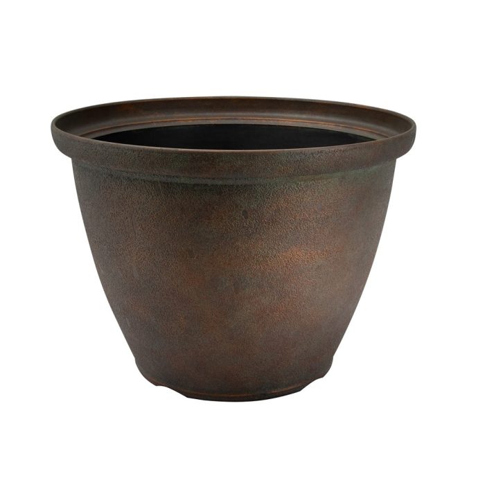 Highlights:Finish: BronzeMaterial: High-Density ResinShape: RoundCapacity: 0.706 cubic feetDiameter: 16 inchesSize: 16-inch Dia x 11-3/4-inch HType: F