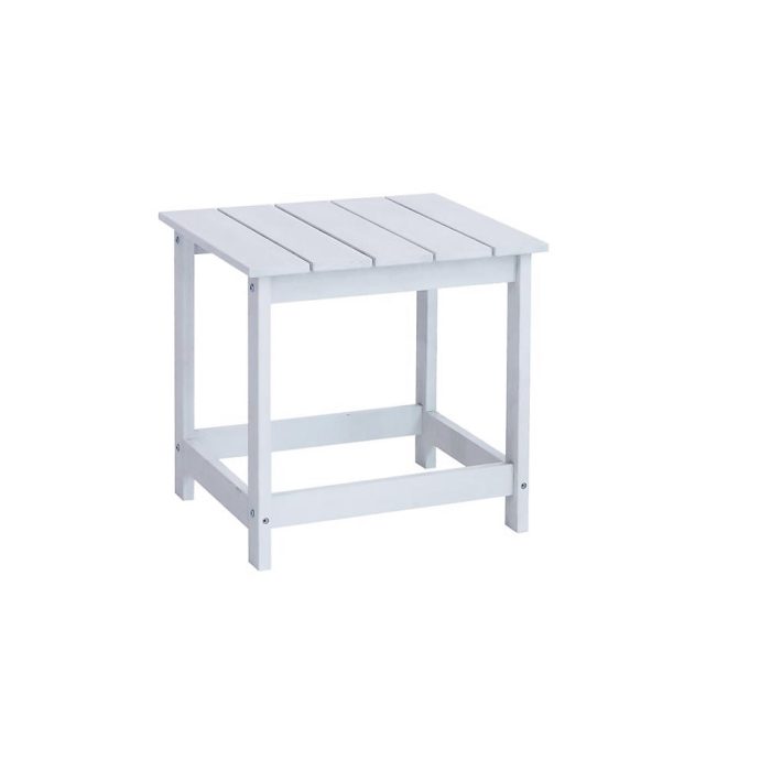 Highlights:Color: WhiteCollection Name: FauxTable Shape: SquareTabletop Material: Poly WoodStyle: AdirondackFrame Material: WoodUV Protected: YesWeath