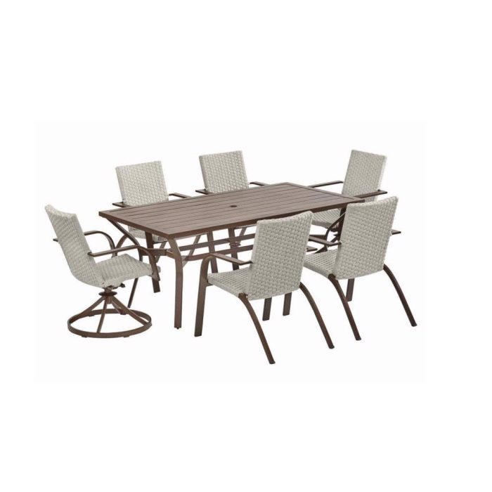 Included: (2) Swivel Dining Chairs, (4) Stationary Dining Chairs and (1) Slat Top Dining Table