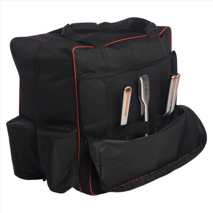 Two zippered side pockets hold 1 lb propane bottles
