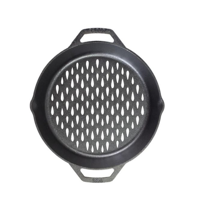 Highlights:Color: BlackHandle Material: Cast IronHandle Length: 4 inchPrimary Material: Cast IronHandle Type: DualLarge perforated cooking surface inf