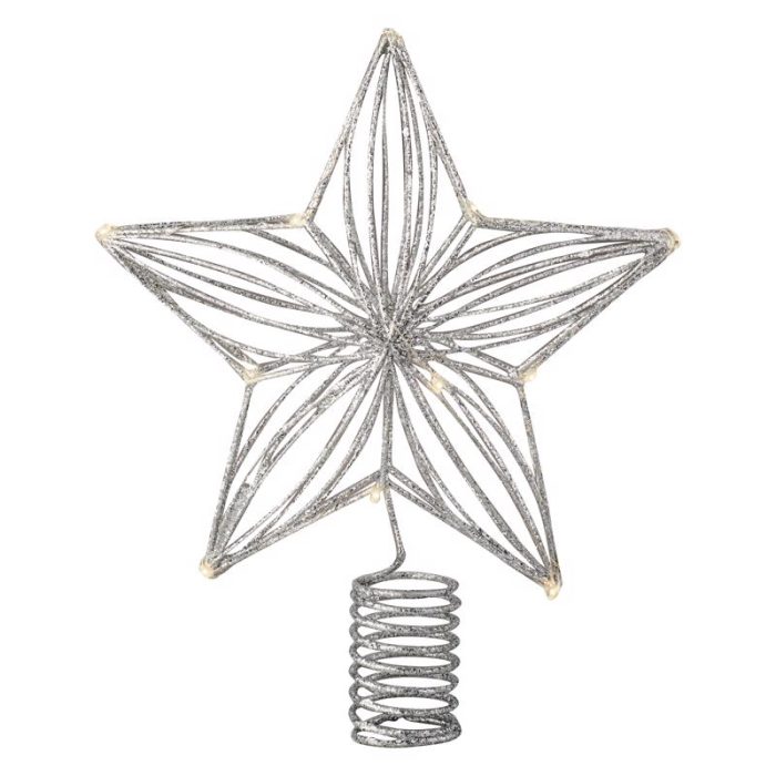 Lumineo 483844 LED Glitter Star Christmas Tree Topper, Silver
