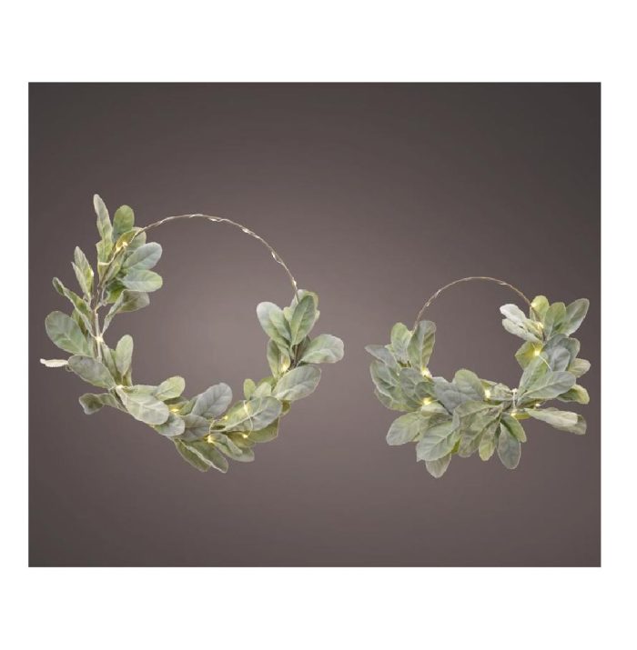 Highlights:Color: GreenChristmas Motif: WreathLength: 17.7 inchNumber in Package: 2 pkHeight: 17.7 inchNumber of Batteries Required: 3 BatteriesWidth:
