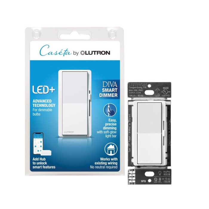 Features the well-loved design of the Lutron Diva LED+ dimmers, and matches existing rocker/paddle style dimmer and switches for a classic look throughout any home