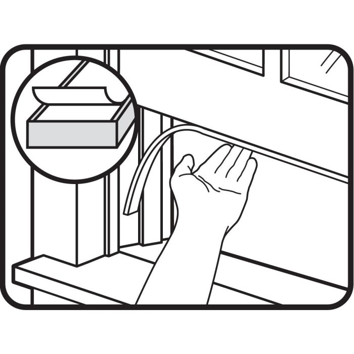 A self adhesive weatherproofing foam tape for eliminating air, dust and moisture leaks around doors and widows. Low density open cell polyurethane foam.