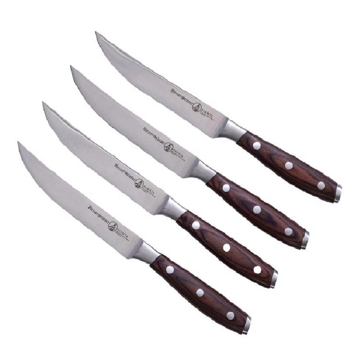 Highlights:Blade Material: Stainless SteelHandle Material: WoodFinish: SatinColor: BrownBlade Length: 5 inchNumber of Pieces: 4 pcOne-piece forgedGerm