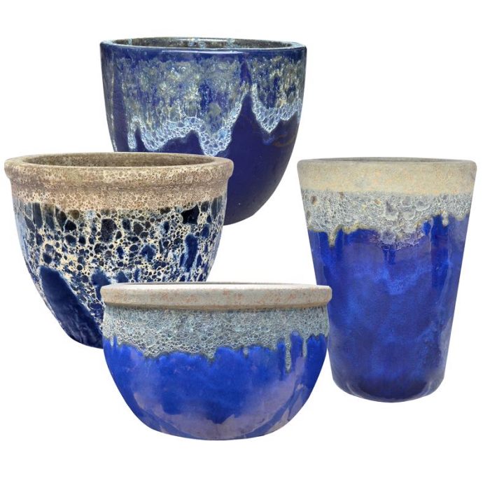 Michael Carr Designs 1308BVOLLBLU Pottery Ceramic Planter, Blue, 14 inches