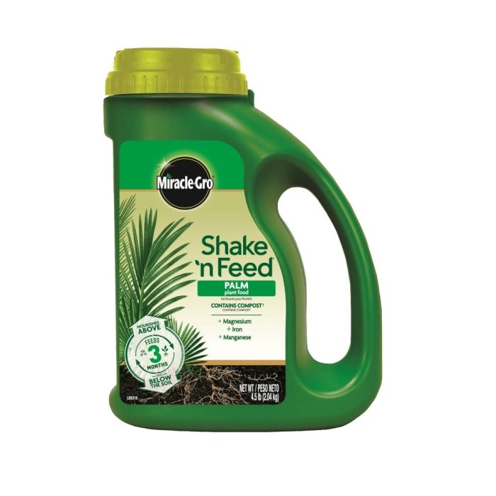 Highlights:Size: 4.5 LbsFertilizer Analysis: 8-2-12Contains magnesium, iron and manganese to grow lush palms, cyads and tropical plantsPrevents yellow