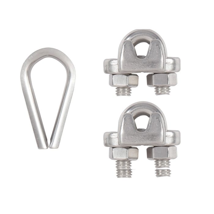 Highlights:Length: 1-1/4 inchMaterial: Stainless SteelOpening Size: 1/4 inchWidth: 3/4 inchNational Hardware’s cable clamp kit is designed to be sturd