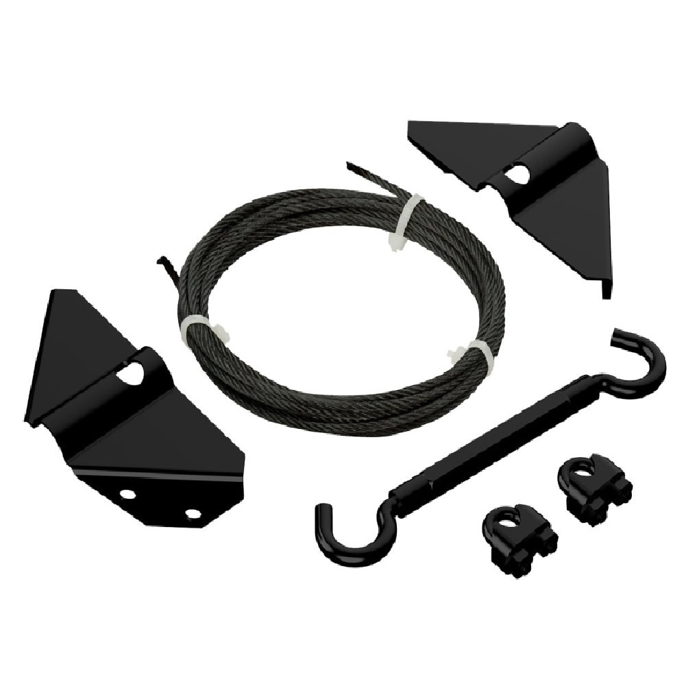Highlights:Color: BlackIncludes: Top bottom corner brackets cable clamps cable turnbuckle mounting screwsMaterial: SteelSpecifications:100 lb Safe Wor