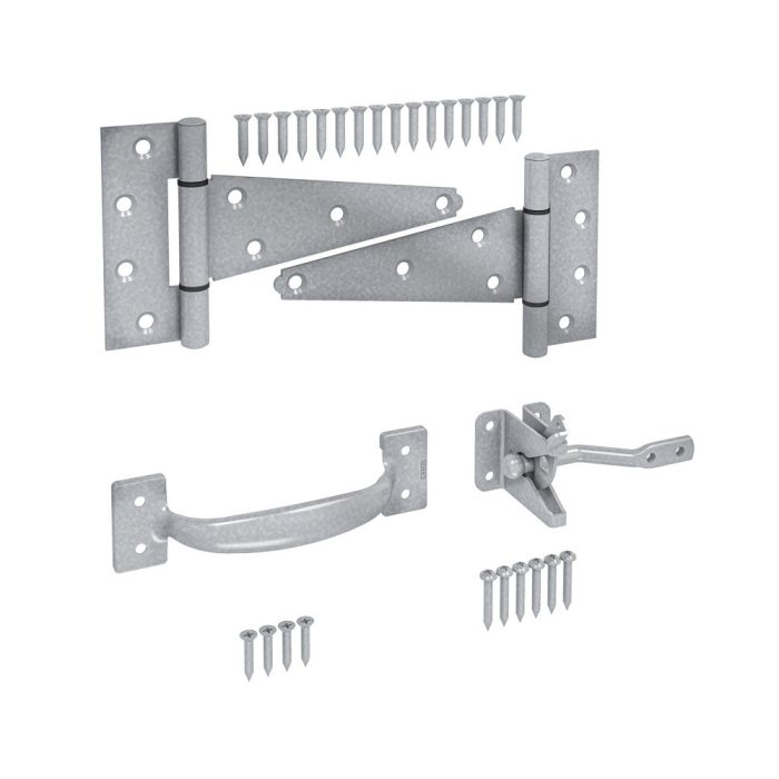 Includes: (1) Gate Latch (2) T-Hinges (1) Pull and Mounting Hardware