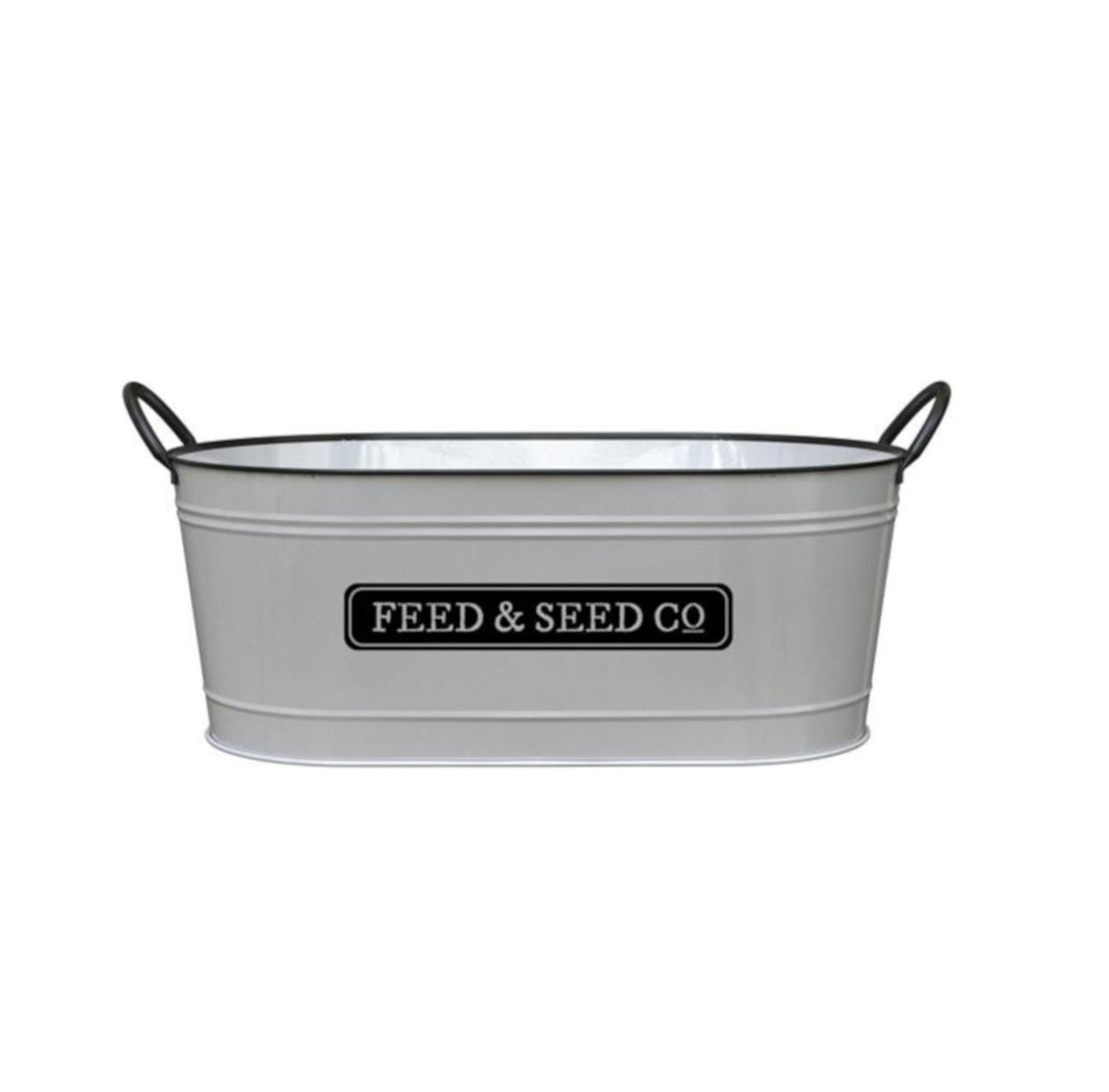 Vintage, distressed appearanceHighlights:Panacea 82613 Milkhouse Feed & Seed Co Planter, Metal